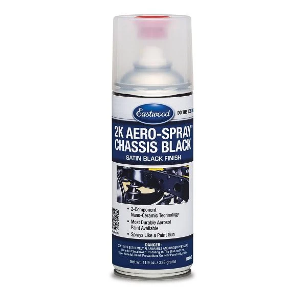 Eastwood’s 2K Ceramic Chassis Black Aerosol allows you to paint with the durability and precision of a two-component coating without the paint gun! Formulated with Eastwood’s proprietary nano ceramic technology to provide a long-lasting and durable finish, while keeping its beautiful finish for years. The innovative nozzle and valve technology, combined with its two internal chambers, ensure the right ratio is mixed every time. Sprays like a gun with a broader spray pattern than conventional aerosols and no mess to clean up. You’ll achieve professional results from an easy-to-spray aerosol.