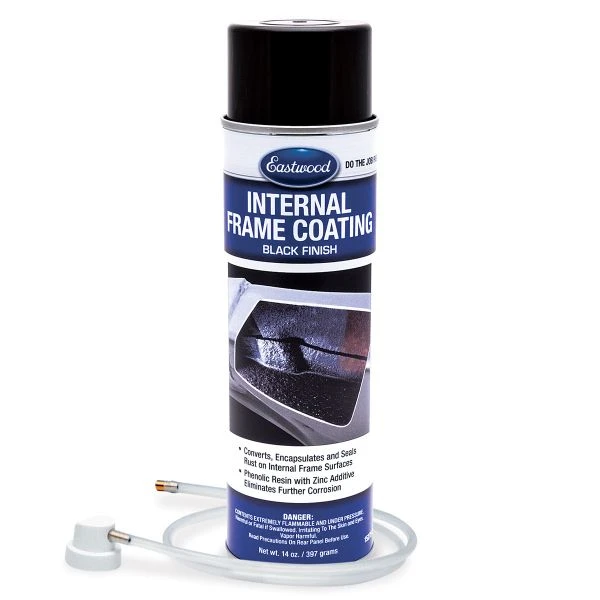 Internal Frame Coating destroys rust hiding inside the chassis, so it does not rust its way through. You spend time and money restoring a chassis, but what about all that rust inside the frame? Use our Internal Frame Coating to make your chassis rust free throughout. Tough phenolic resin penetrates, converts and encapsulates the rust on the internal surface. Zinc phosphate seals it to prevent future corrosion. And the 24 inch long tube with conical nozzle reaches in to spray coating in a radial pattern for complete coverage. Aerosol covers 10 sq. ft. and quart covers 50 sq. ft. Fully cures in 24 hours.