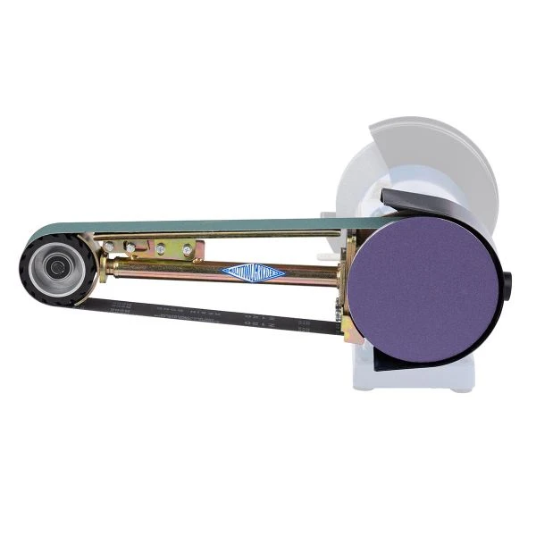 Our 2″ x 48″ belt with 7 ” disc attachment extend your capabilities far beyond traditional bench grinders. The additional length of the 2 x 48 attachment provides an extra long precision top platen for straightening, flat finishing, or profiling longer edges. Additionally the longer belt length offers increased belt wrap on the underside slack belt surface for external contouring and blending.