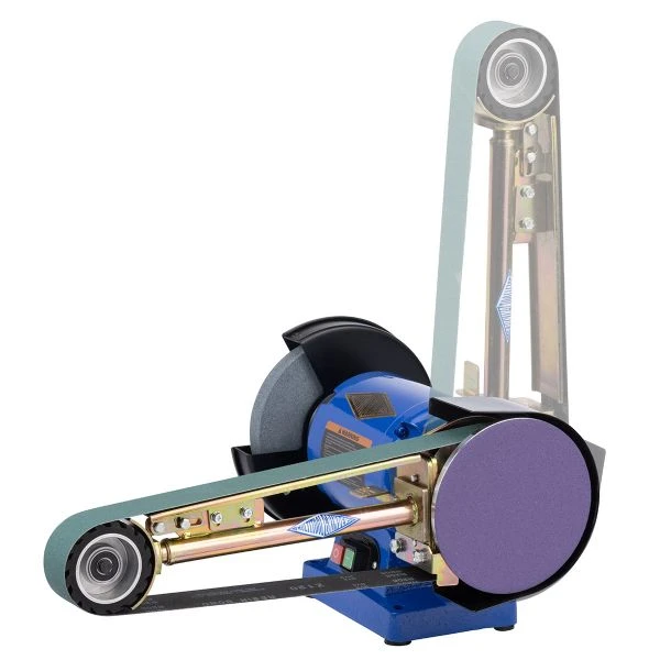 The front contact wheel can be used for smooth controlled grinding, contouring, or internal finishing. The large 7 inch disc sander on the side offers plenty of surface area to work with for beveling, deburring, squaring and general sanding. Multitool Attachments fit almost any bench grinder with a 1/2 or 5/8 shaft.