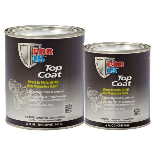 POR-15® Top Coat may be applied directly to a clean prepped metal surface but, when used as a top coat over POR-15® Rust Preventive Coating it provides the toughest, most permanent protection against rust and corrosion ever developed. It won’t crack, chip or peel and will look terrific!